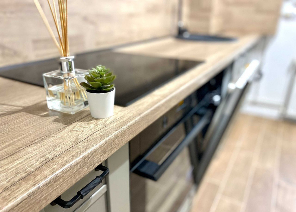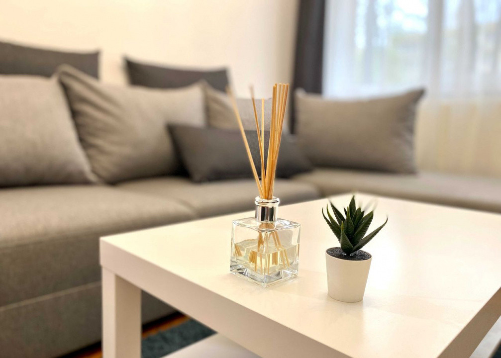 Apartamentul este finisat modern si complet mobilat/utilat, compartimentat astfel: 1 dormitor, living, bucatarie, 1 baie hol si balcon inchis.