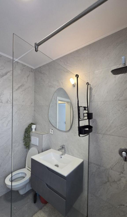 Apartamentul este finisat modern si complet mobilat/utilat, compartimentat astfel: 1 dormitor, living cu bucatarie, 1 baie, hol si terasa.