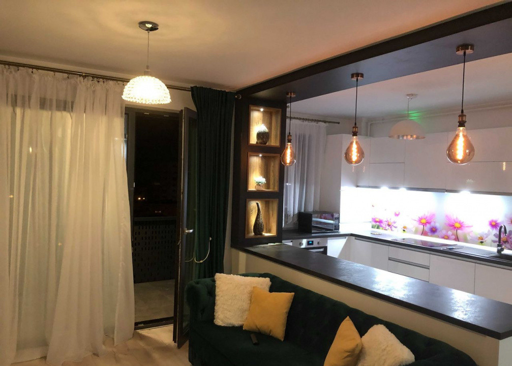 Apartamentul este finisat modern si complet mobilat/utilat, compartimentat astfel: 1 dormitor, living cu bucatarie, 1 baie hol si terasa.