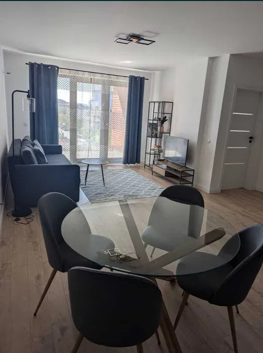 Apartamentul este finisat modern si complet mobilat/utilat, compartimentat astfel: 1 dormitor,living cu bucatarie, 1 baie, hol si terasa.