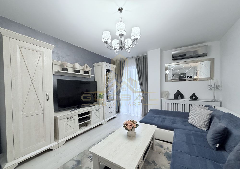 Apartamentul este finisat modern si complet mobilat/utilat, compartimentat astfel: 1 dormitor, living cu bucatarie, 1 baie, hol si terasa.