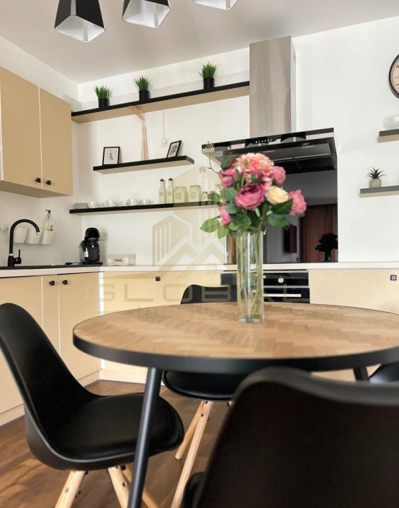 Apartamentul este finisat modern si complet mobilat/utilat, compartimentat astfel: 1 dormitor, living cu bucatarie, baie, hol si terasa.
