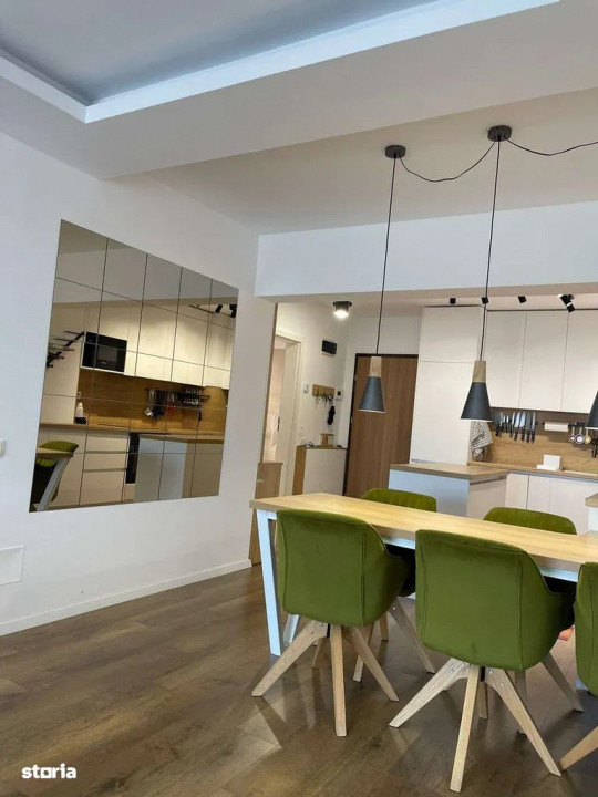 Apartamentul este finisat modern si complet mobilat/utilat, compartimentat astfel: 2 dormitoare, living cu bucatarie, 2 bai, hol si terasa.