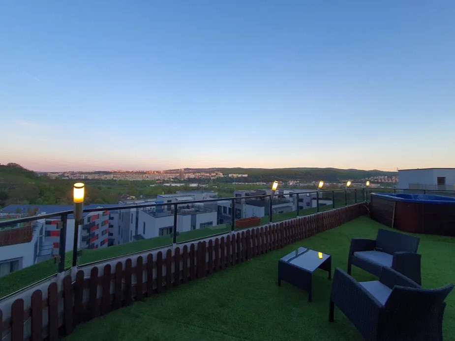 Locuinta este situata la etajul 3, al unui imobil cu 3 nivele si dispune de o suprafata utila de 90 mp + terasa de 90 mp.