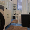 - Baie cu geam mare, cadă, mașină de spălat rufe cu uscător incorporat, mobilier baie și WC.