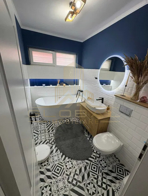 Apartamentul este finisat modern si complet mobilat/utilat, compartimentat astfel: 2 dormitoare, living cu bucatarie, 2 bai, hol si 2 balcoane.