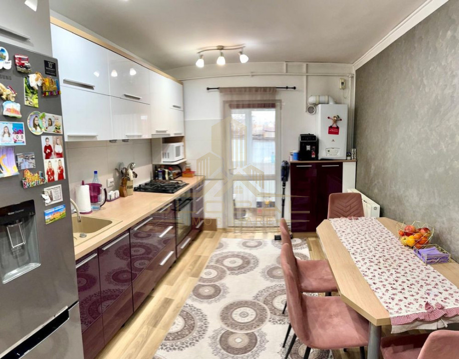 Apartamentul este finisat modern si complet mobilat/utilat, compartimentat astfel: 3 dormitoare, bucatarie separata, 1 baie, hol, balcon, boxa, parcare si garaj.