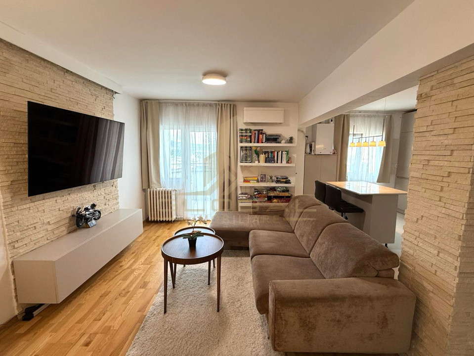 Locuinta este situata la etajul 6 al unui imobil reabilitat cu 11 nivele si dispune de o suprafata utila de 76 mp + 2 balcoane cu o panorama superba.