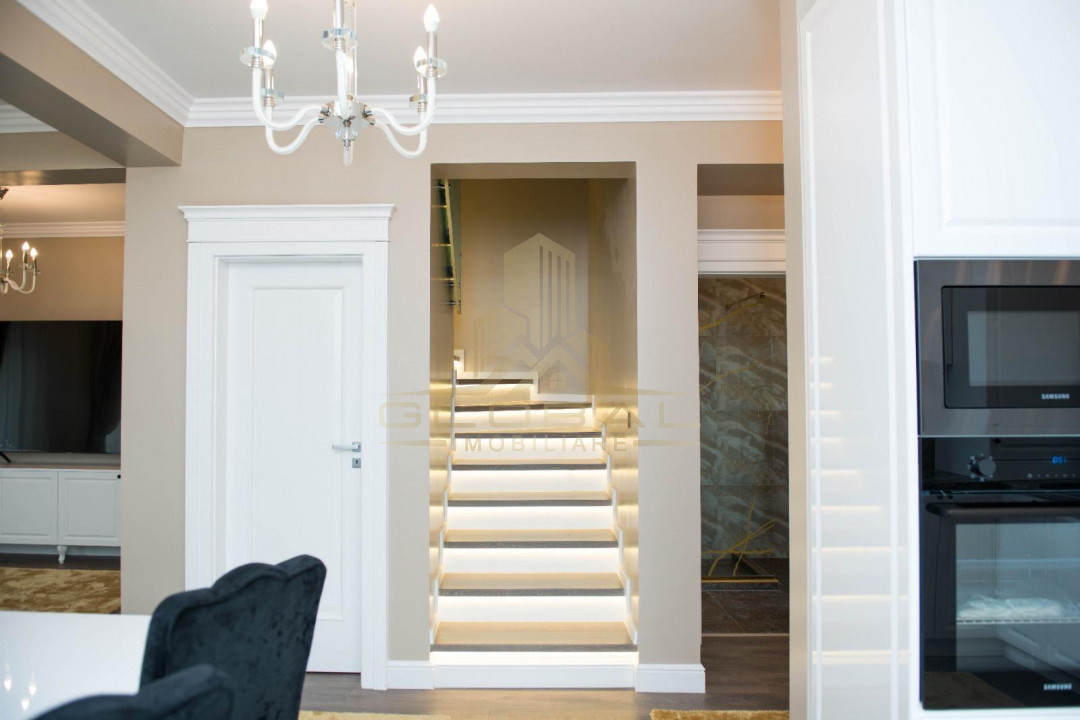 Dispusa pe 2 nivele cu suprafata utila de 160 mp, curte de 400 mp, Jacuzzi, terasa circulara mare cu panorama deosebita.
