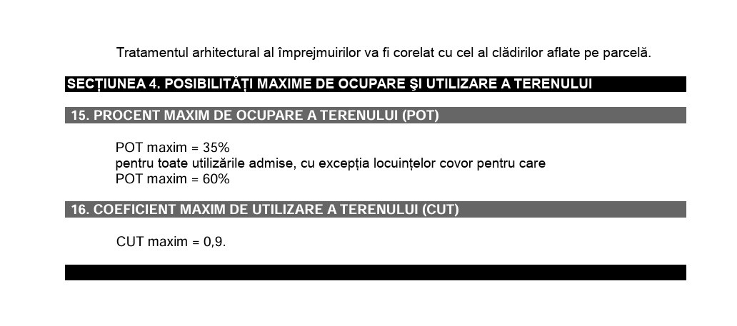 Tipuri de construcții permise: (S)+P+1+M, (S)+P+1+R, (S)+P+2, D+P+1+M, D+P+2, D+P+M, D+P+R