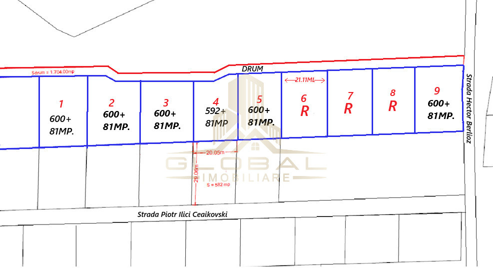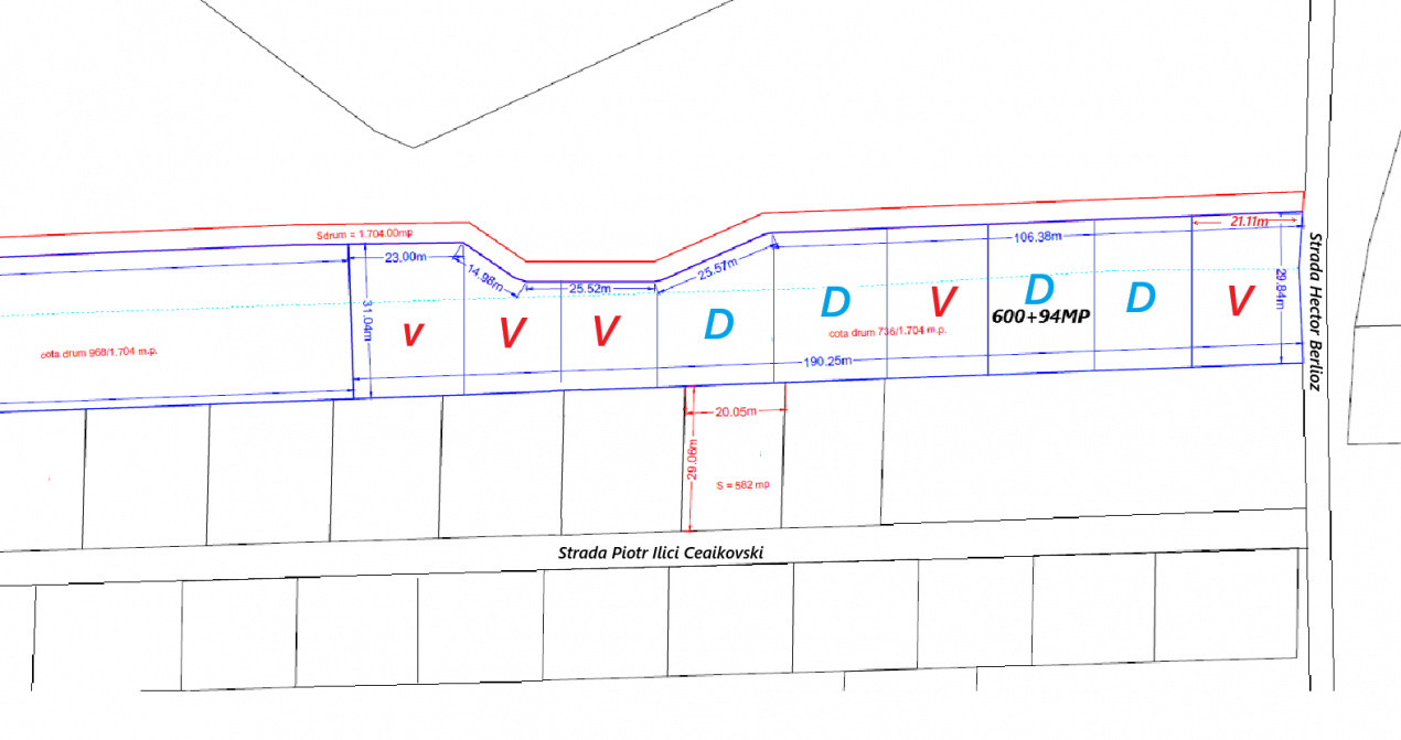 Suprafață: 680 mp, cu cotă parte din calea de acces (după dezmembrare, parcelele marcate cu litera D sunt disponibile)